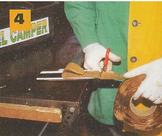 E’ importantissimo apporre nella parte inferiore del supporto, dove inseriremo le viti, una striscia di mastice (vedi il comune Terostat), per evitare che l’acqua piovana si infiltri nei fori e di conseguenza, si infiltri, nella scocca a lungo andare e la danneggi (foto 4).